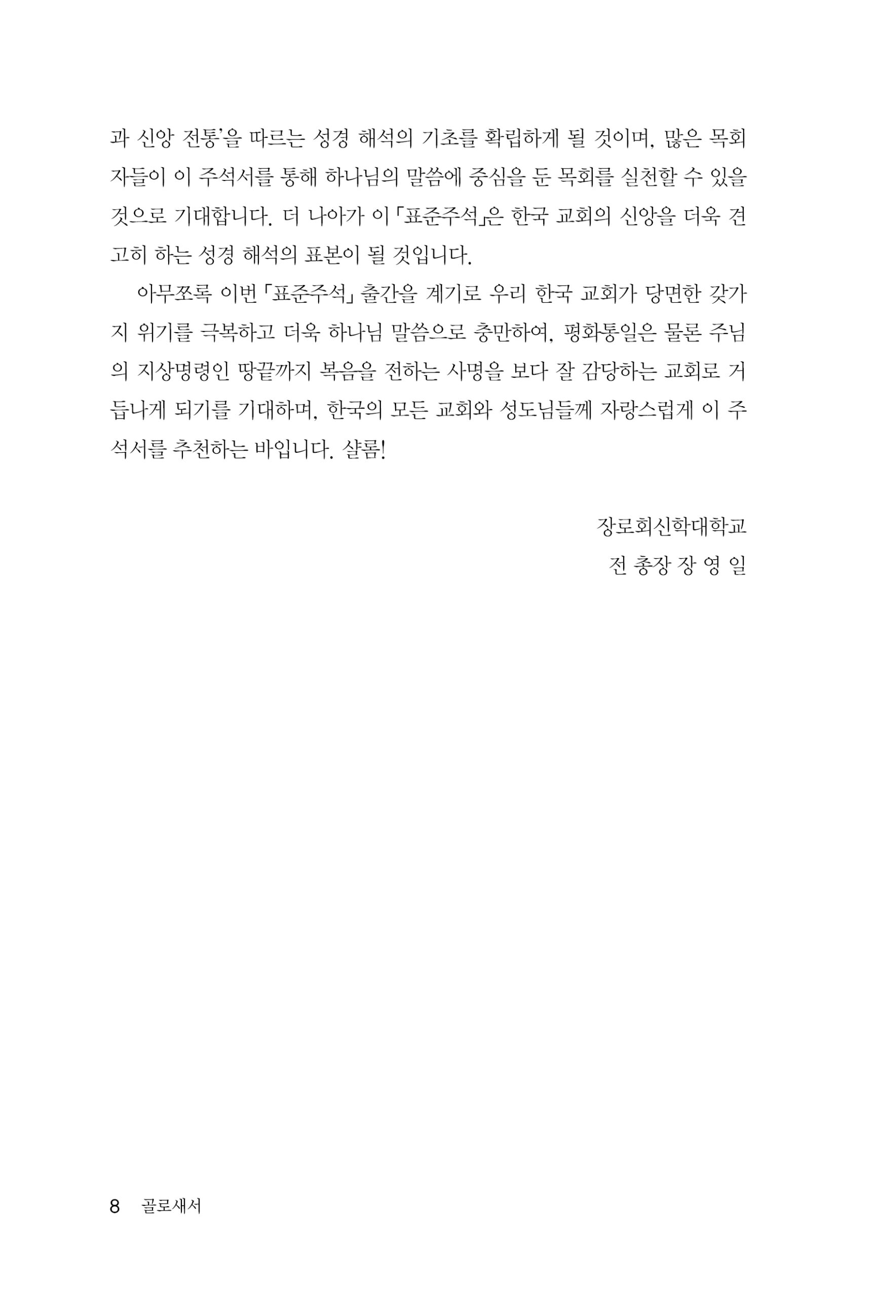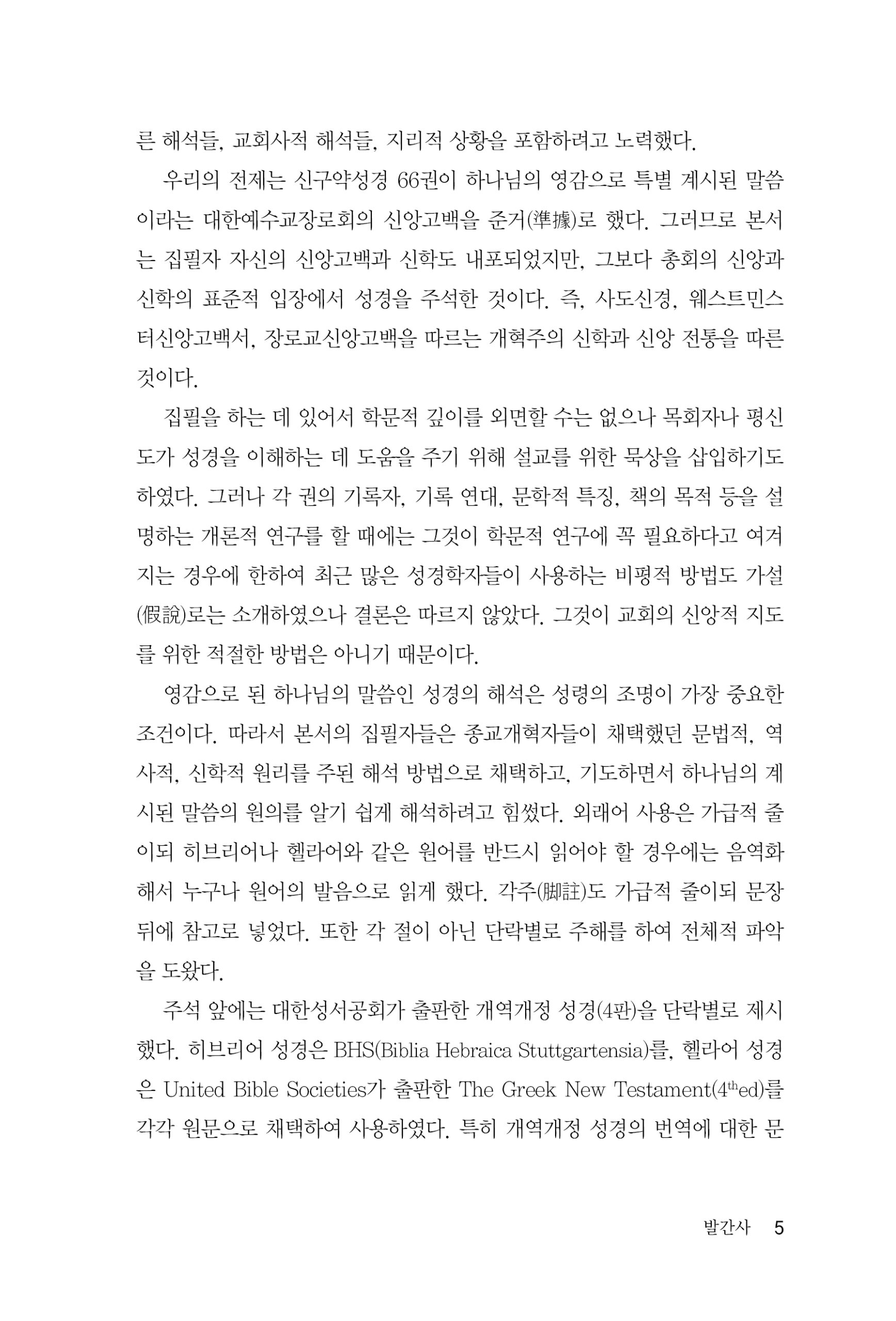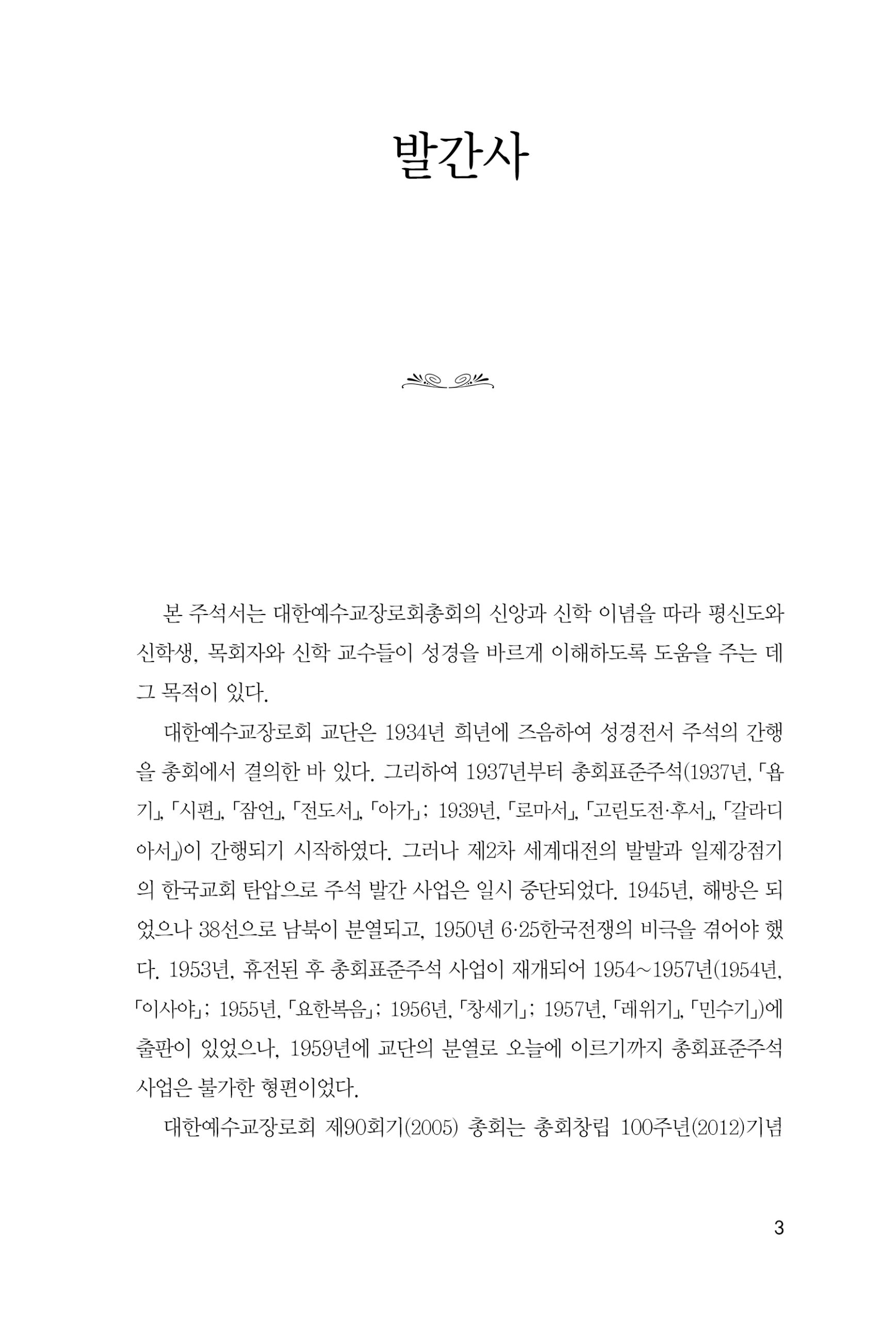 본 주석서는 대한예수교장로회총회의 신앙과 신학 이념을 따라 평신도와 신학생, 목회자와 신학 교수들이 성경을 바르게 이해하도록 도움을 주는 데 그 목적이 있다.