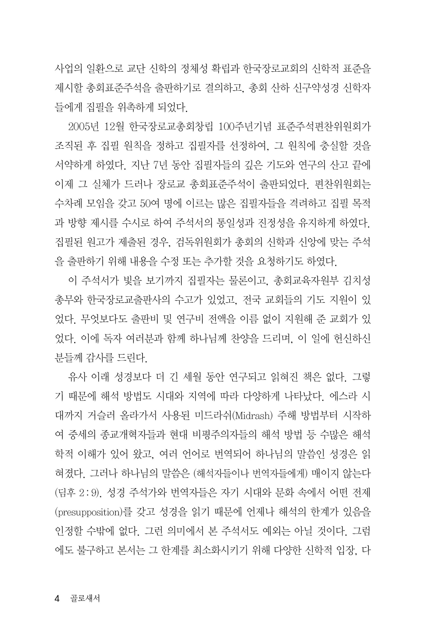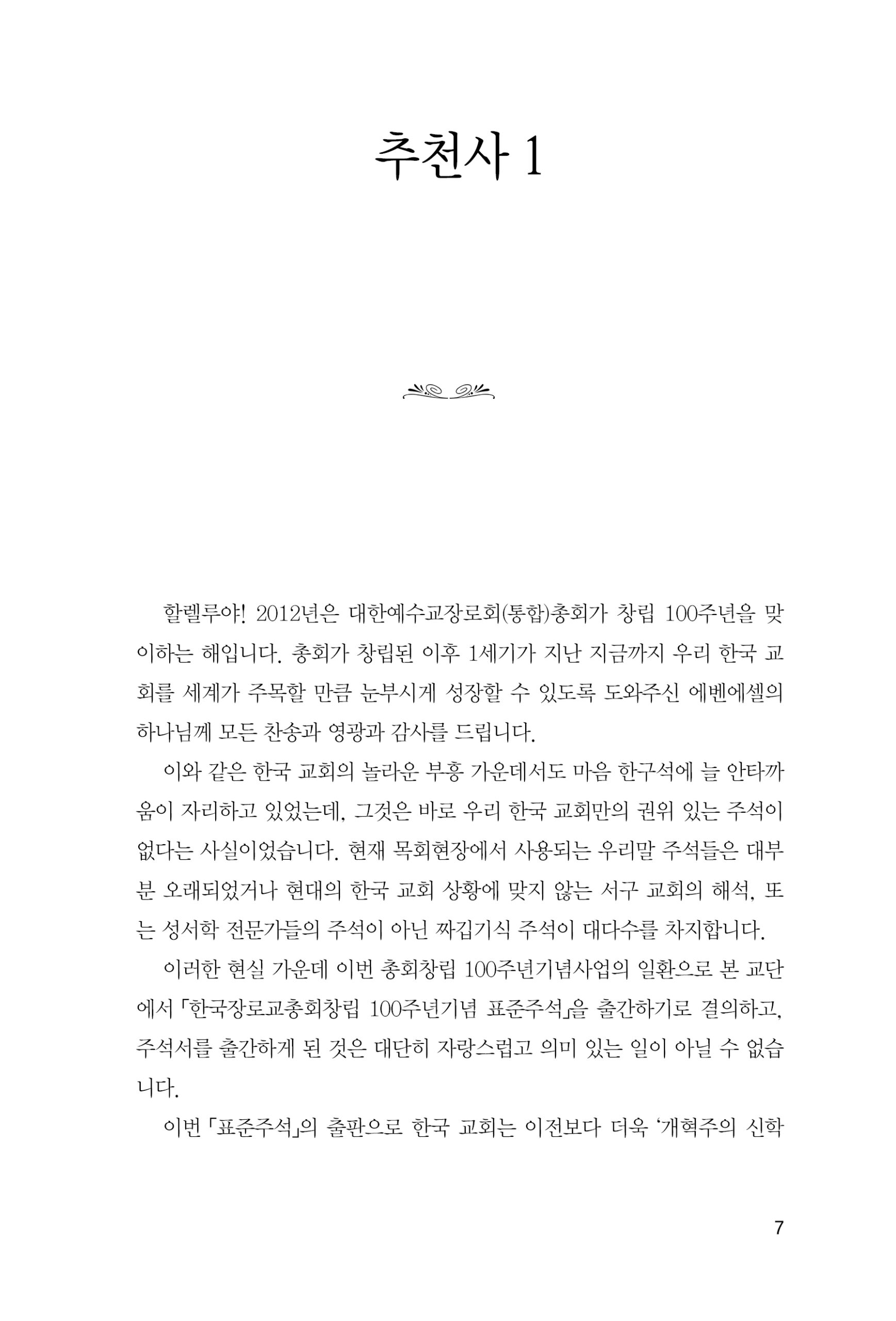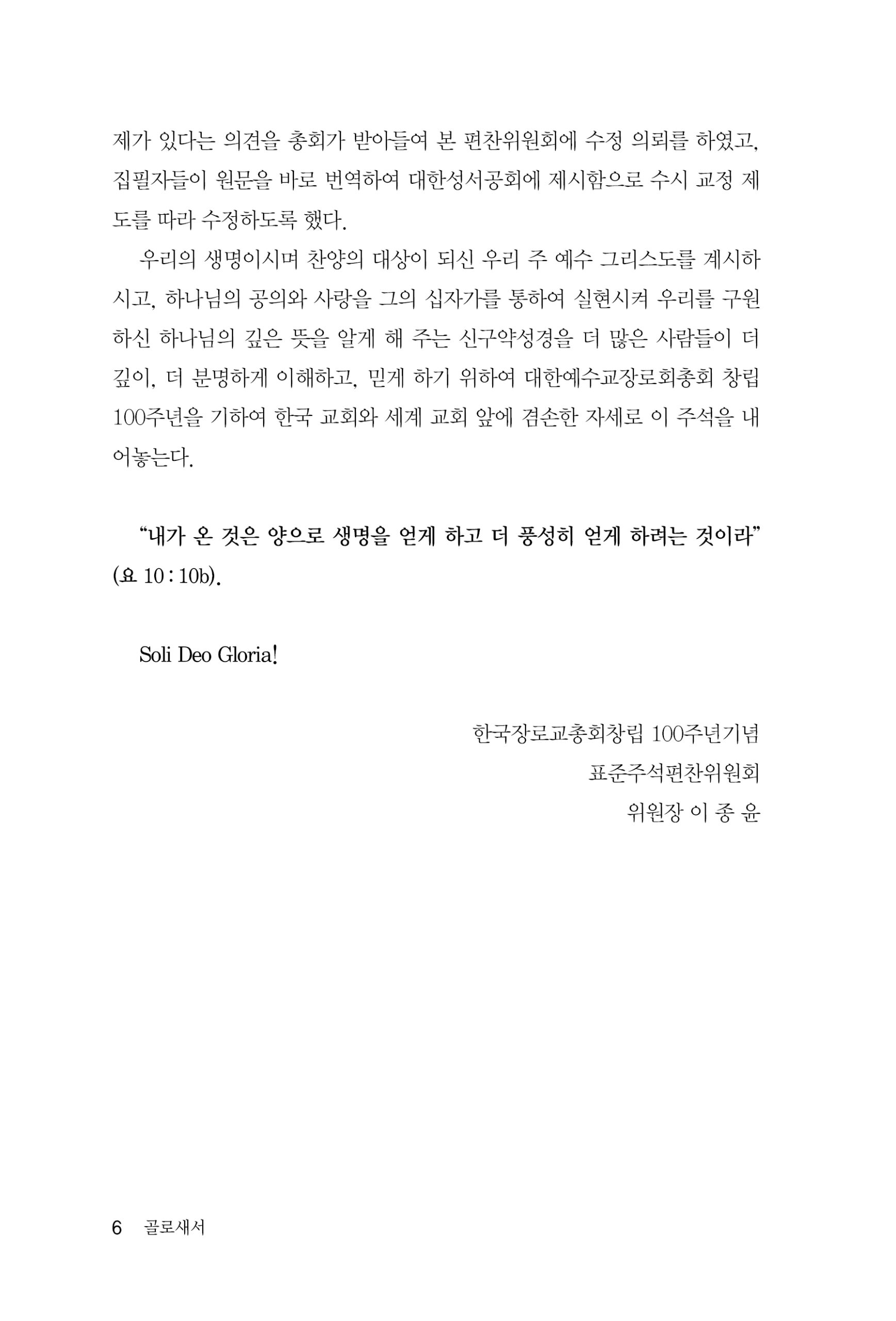 대한예수교장로회 제90회기(2005) 총회에서는 ‘총회창립 100주년 기념사업’의 일환으로 교단 신학의 정체성 확립과 한국장로교회의 신학적 표준을 제시할 총회표준주석을 출판하기로 결의하였다. 그 후 집필자들의 깊은 기도와 연구의 산고 끝에 본 주석을 완성하게 되었다.